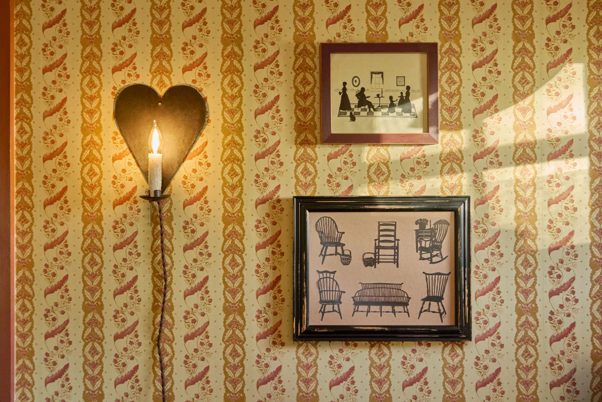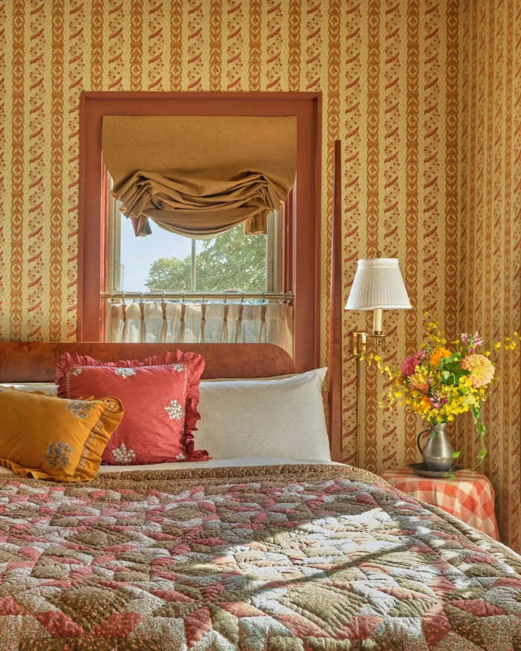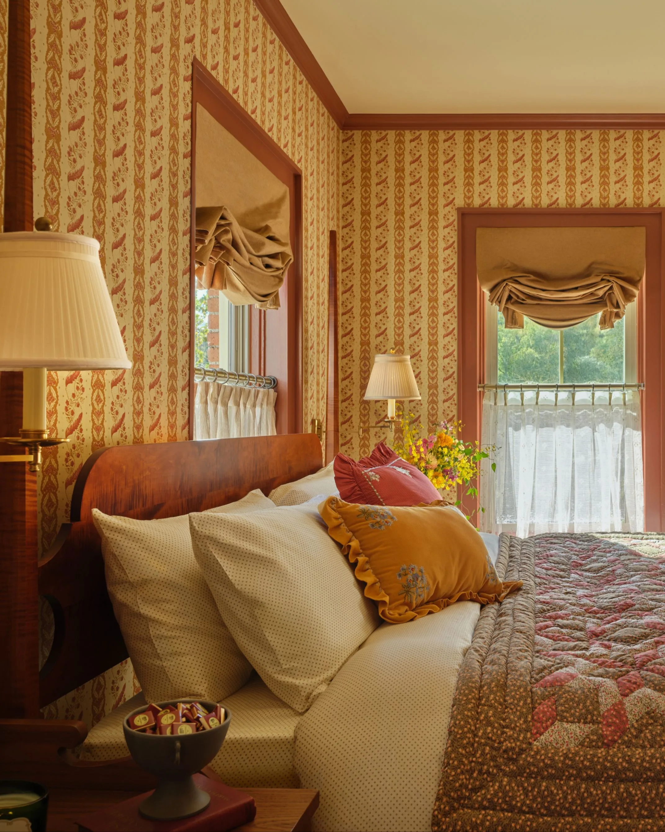 This cozy corner room is inspired by Barrow’s Green in fall, when the maples turn, the children make corn dollies at the local primary school, and many a villager can be found dancing wildly by the creek in Gable’s Hollow. Every year, a debate—often spearheaded by Ursula Lumley—breaks out over whether the harvest festivities are slightly too occult in nature.
